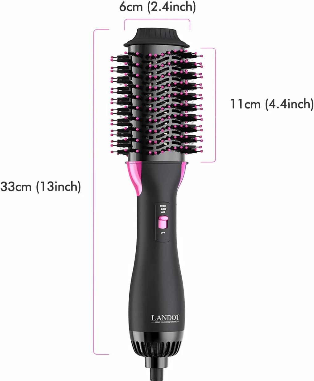 Hot Air Brush Dryer: This hair dryer brush gives your hair a smooth, silky, natural lustrous look by sealing the hair cuticles, thus reducing split ends and knotting. Perfect for dry as well as wet hair and all hair types. You can use it as a hair dryer or a styler to make your hair wavy or straight.Β