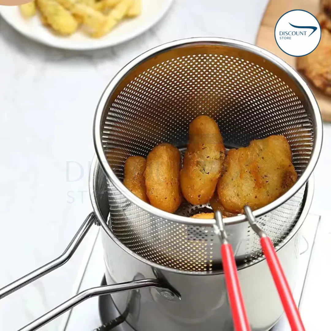 Experience efficient and mess-free frying with this compact fryer pot made from premium 304 stainless steel.Β Its detachable strainer basket ensures hassle-free oil draining and cleaning.
